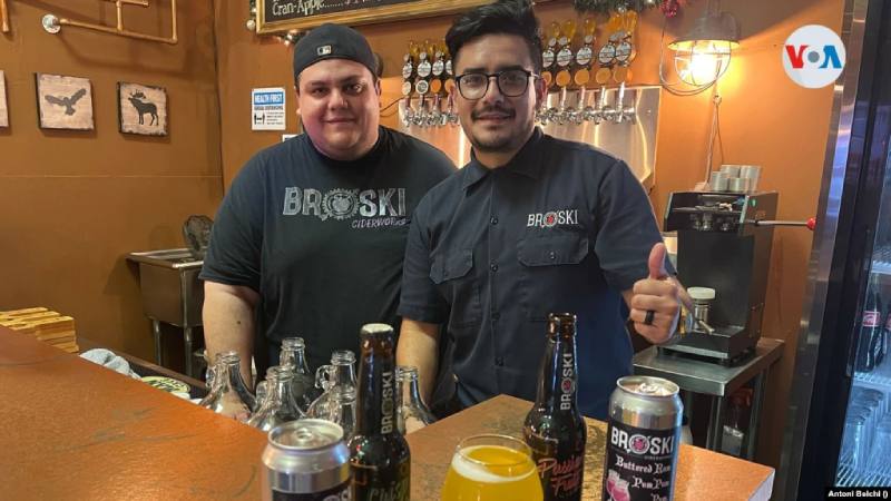 ARCHIVO: Los hermanos David y Daniel Verdugo fundaron en 2015 «Broski Ciderworks» y en poco tiempo se ha convertido en un referente en Estados Unidos. Foto: Antoni Belchi/VOA.